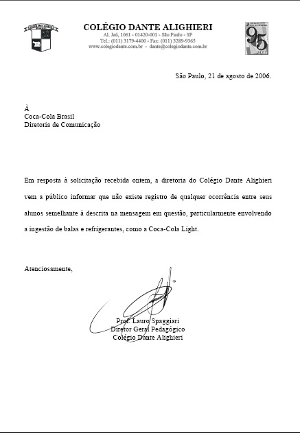 è la smentita fatta dal collegio dove si diceva fosse morto quel ragazzo a causa di coca cola light + mentos!
