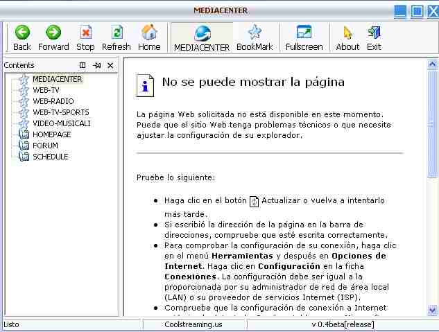 saluti a tutti, e' forse la prima volta che posto nel forum nonostante lo segua da tempo ,vivo all'estero e quindi capirete l'importanza che per me ricopre l'utilizzo del mediacenter che nn aprivo da alcuni giorni ed oggi , sorpresa esce la solita pagina bianca (allego screenshot), ho anche letto della nuova versione beta ,ma vorrei sapere se il problema e' relativo alla v.4 del mediacenter oppure ho problema io a collegarmi .
