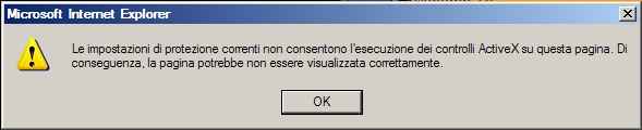 Apri internet explorer, vai su strumenti --> opzioni --> protezione --> livello personalizzato --> cerca la voce "controlli e plug-in ActiveX" --> vai su "esegui controlli e plug-in ActiveX" e seleziona la voce "attiva".