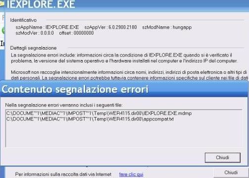 sono un nuovo utente del sito anche se sono tormentato da continui crash del browser Internet Explorer (versione 6.0.2900.2180.xpsp-sp2-gdr.050301-1519) mentre navigo tra i links delle web-tv. La versione del Windows Media Player è la 10.00.00.3646 e quella di RealPlayer é 6.0.12.1483. Non ho problemi di navigazione in nessun altro sito tranne quello di Coolstreaming e il computer è recente e funziona perfettamente . Vi segnalo in allegato l'errore che il sistema comunica alla Microsoft.