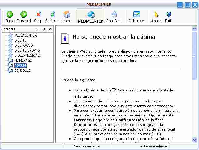 esce la solita pagina bianca (allego screenshot), ho anche letto della nuova versione beta ,ma vorrei sapere se il problema e' relativo alla v.4 del mediacenter oppure ho problema io a collegarmi .chiedo cio' perche mi succede anche con un altro soft(xxx) che peraltro nn ho mai visto menzionato nel forum e che spero nn aver comesso nessun reato nel linkare il sito ho gia controllato firewall etc etc ......ma proprio nn va .....ah dimenticavo la cosa strana che se entro dal portale funziona . aspettando una vs cortese risposta saluto tutti cordialmente |